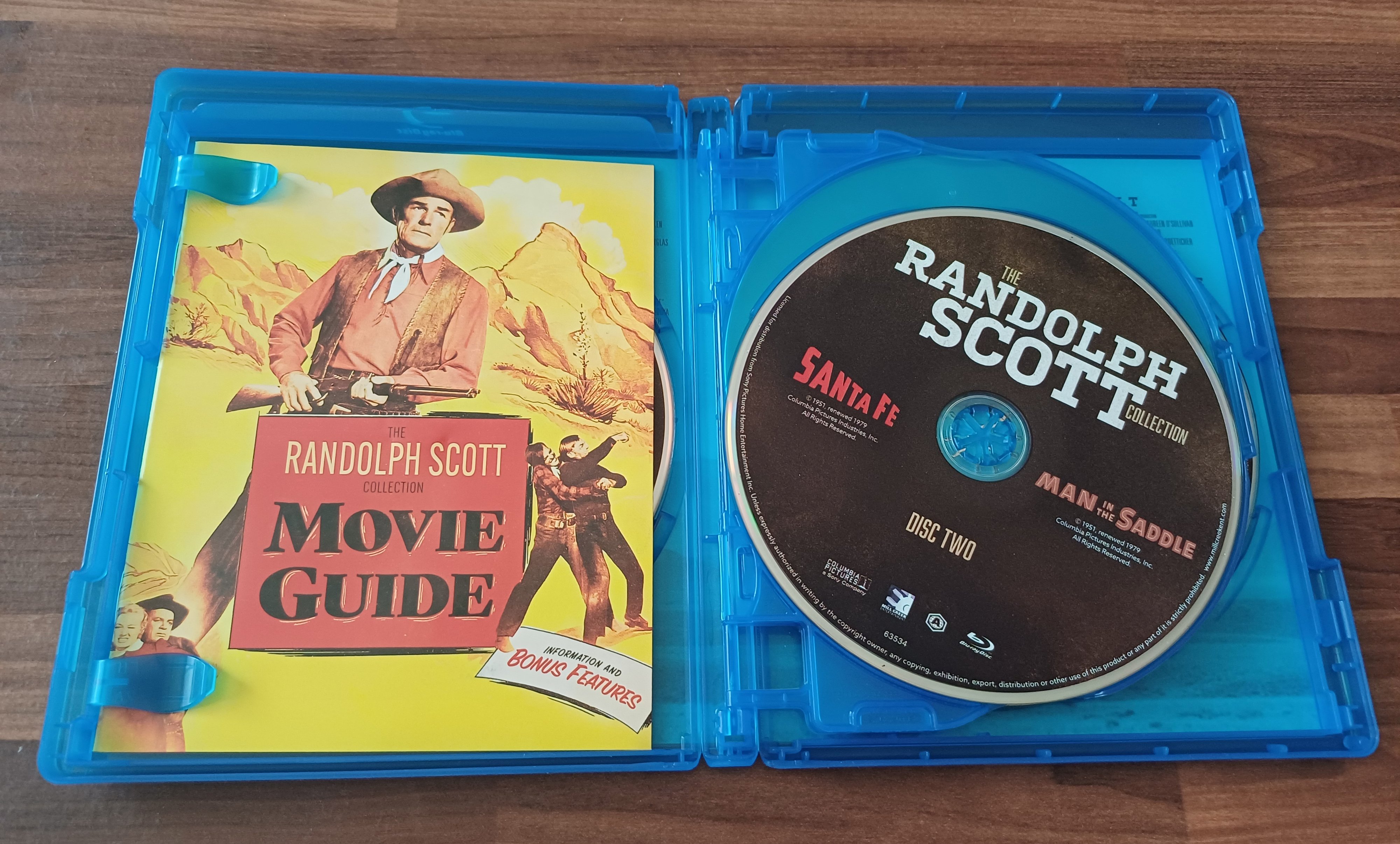 출시사는 밀 크릭 Mill Creek인데 라이센스 받아서 저렴한 묶음 제품들을 많이 내놓는 회사죠. 여섯 장의 디스크에 열두 편이 담겨 있습니다. 그리고 소책자가 수록되어 있는데 랜돌프 스코트의 커리어를 간략하게 소개하는 글과 각 영화에 대한 소개글이 실려 있습니다.