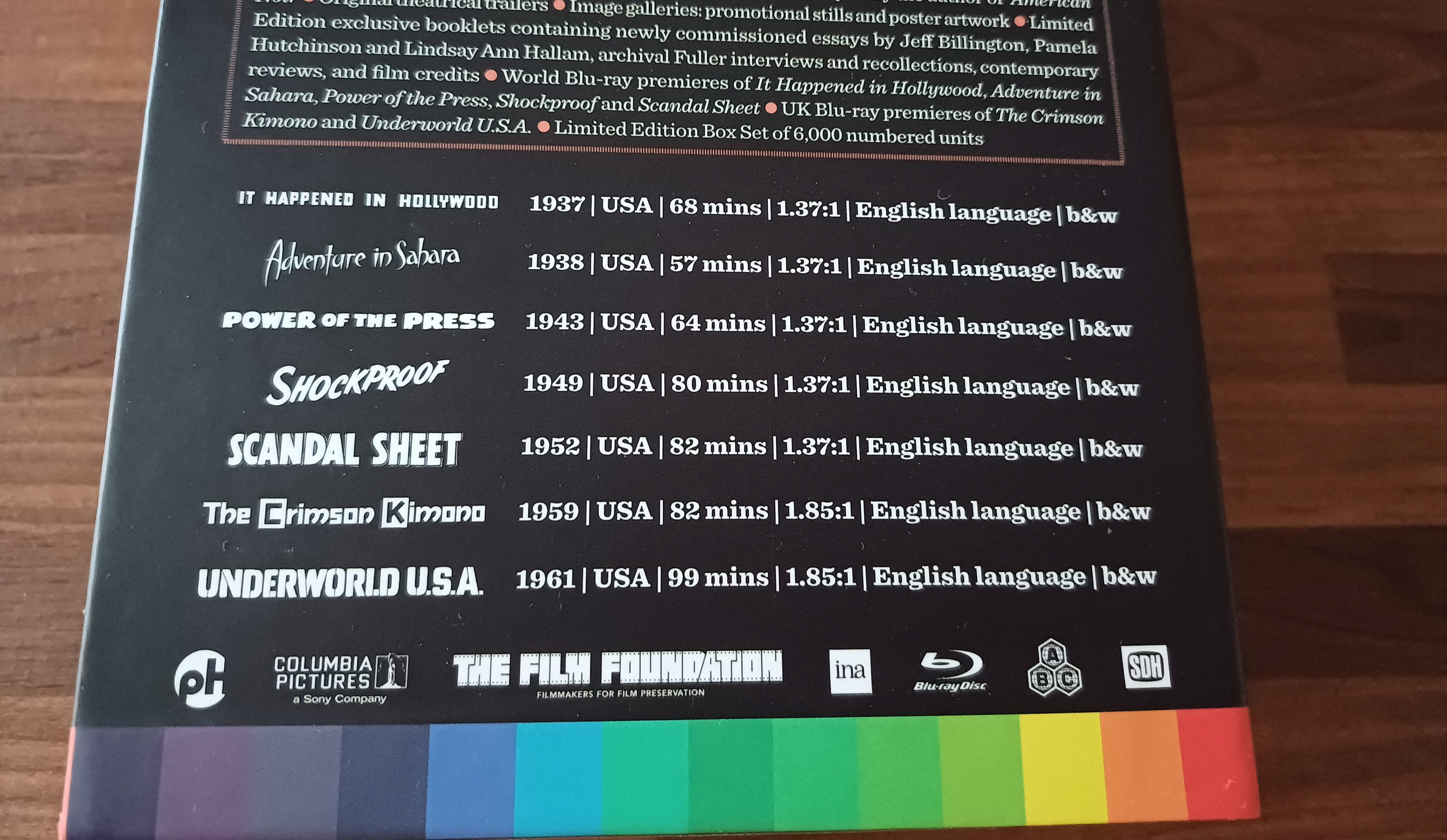 사무엘 풀러 앳 컬럼비아 (Samuel Fuller at Columbia 1937-1961)라는 타이틀의 블루레이 박스세트입니다. 사무엘 풀러의 감독작 뿐만 아니라 스토리 원안이나 시나리오를 담당한 작품과 원작자로서 크레딧에 오른 영화들도 함께 담고 있습니다. 일곱 편의 영화를 수록하고 있습니다. 몇년 전에 구입했던 박스세트인데 현재는 판매를 하고 있진 않고 개별로 출시된 일반판을 판매하고 있습니다.