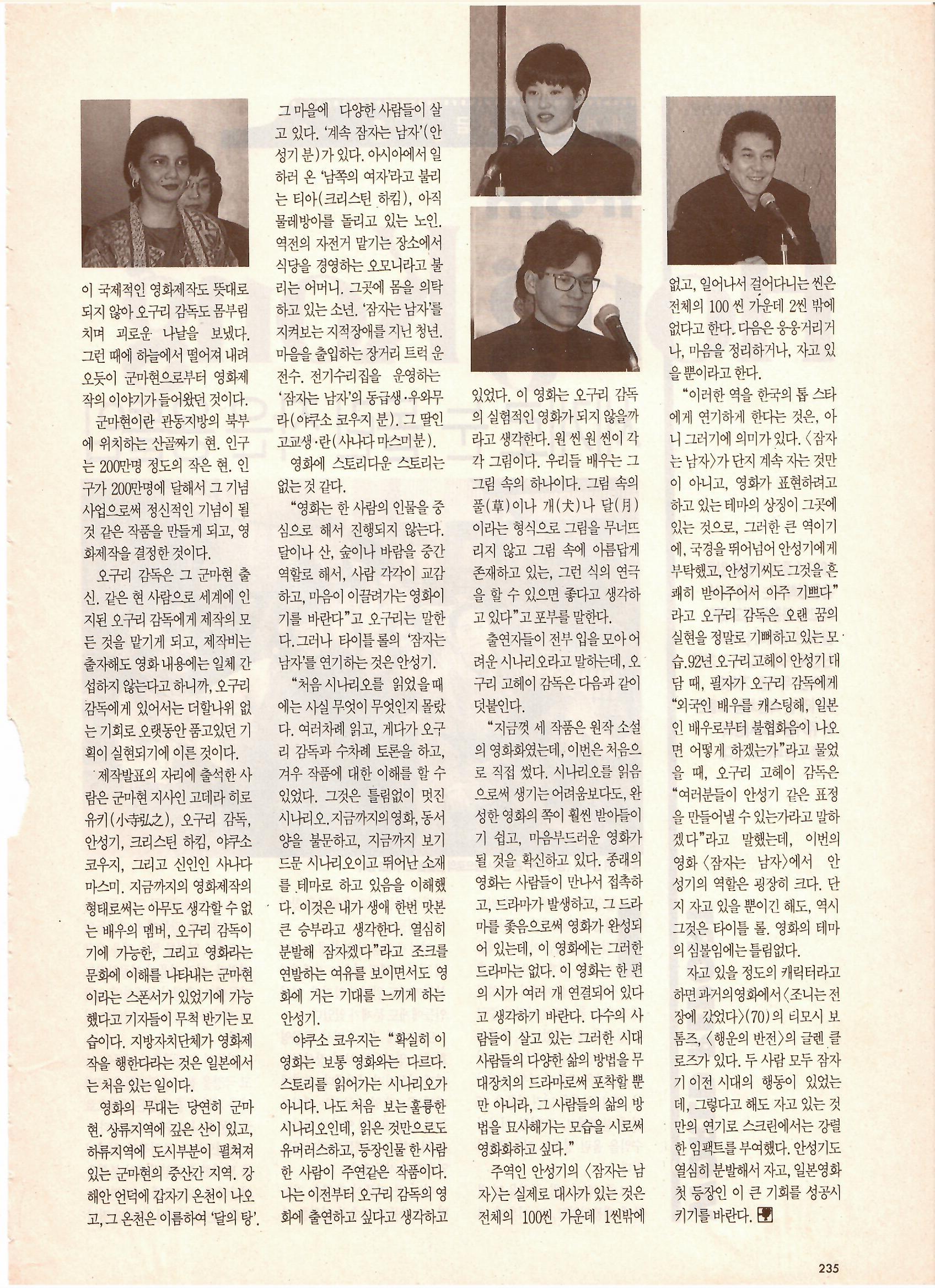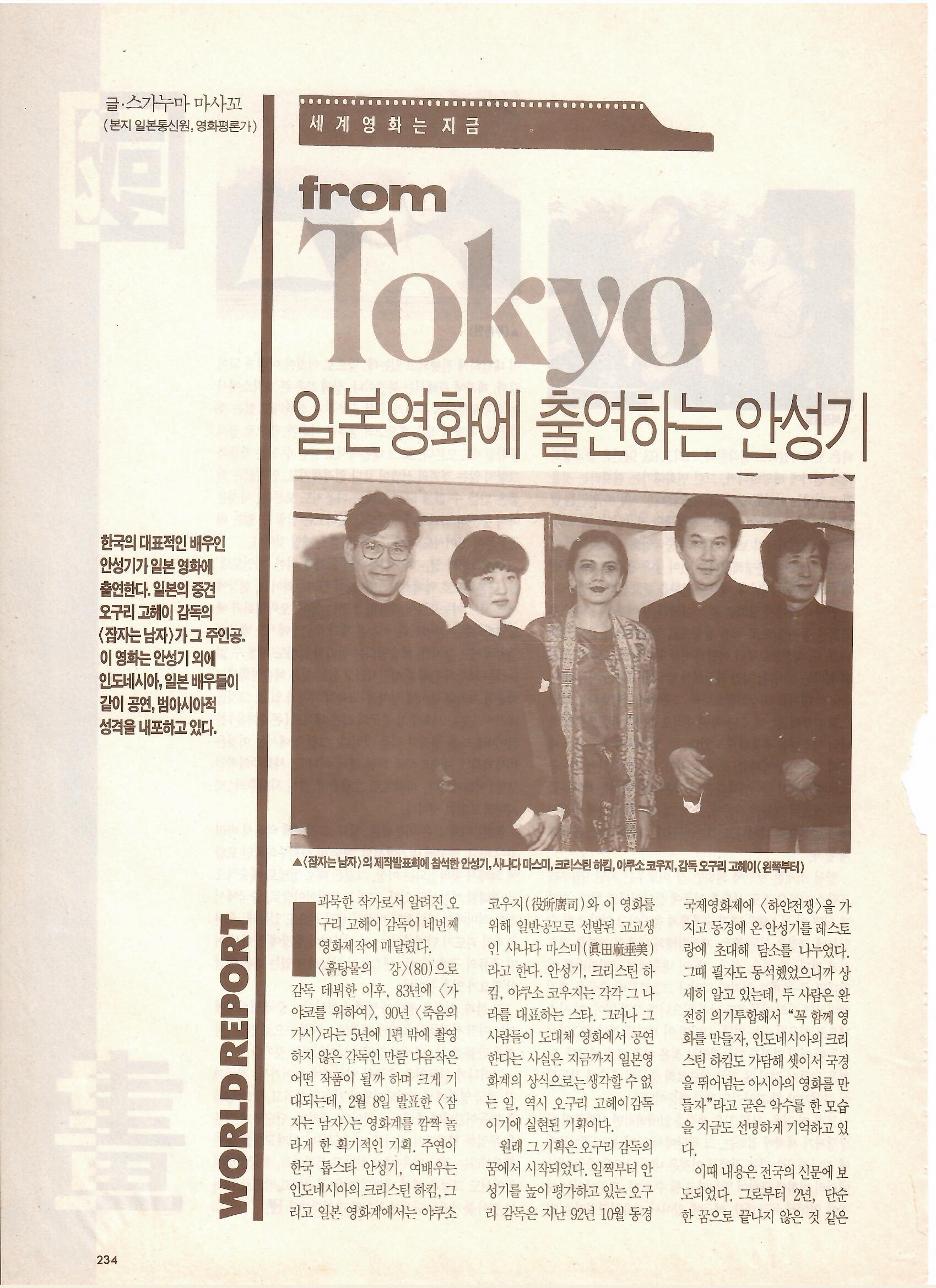안성기 씨가 오구리 고헤이 감독의 '잠자는 남자' 출연했던 시기의 기사네요.