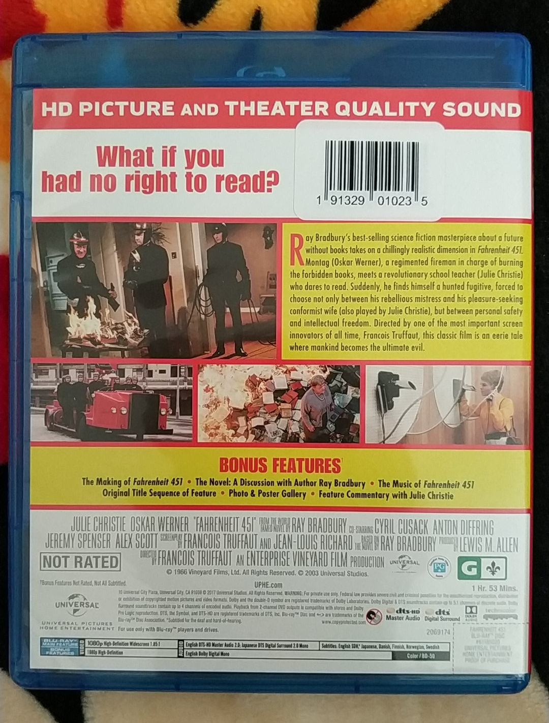 Fahrenheit 451: Directed by François Truffaut. With Julie Christie, Oskar Werner, Cyril Cusack, Anton Diffring. In an oppressive future, a fireman whose duty is to destroy all books begins to question his task.