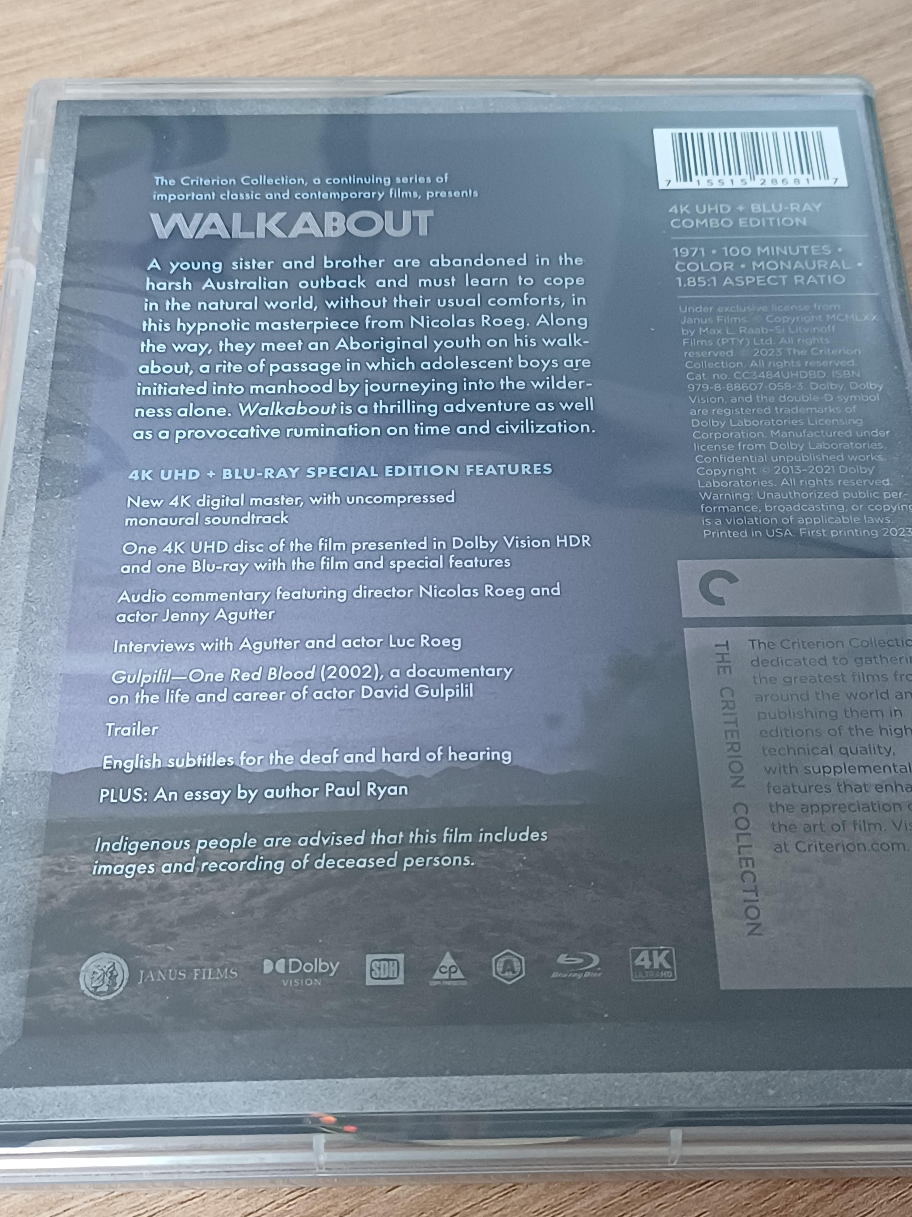 니콜라스 뢰그 감독의 워커바웃입니다. 예전부터 블루레이로 갖고 싶었던