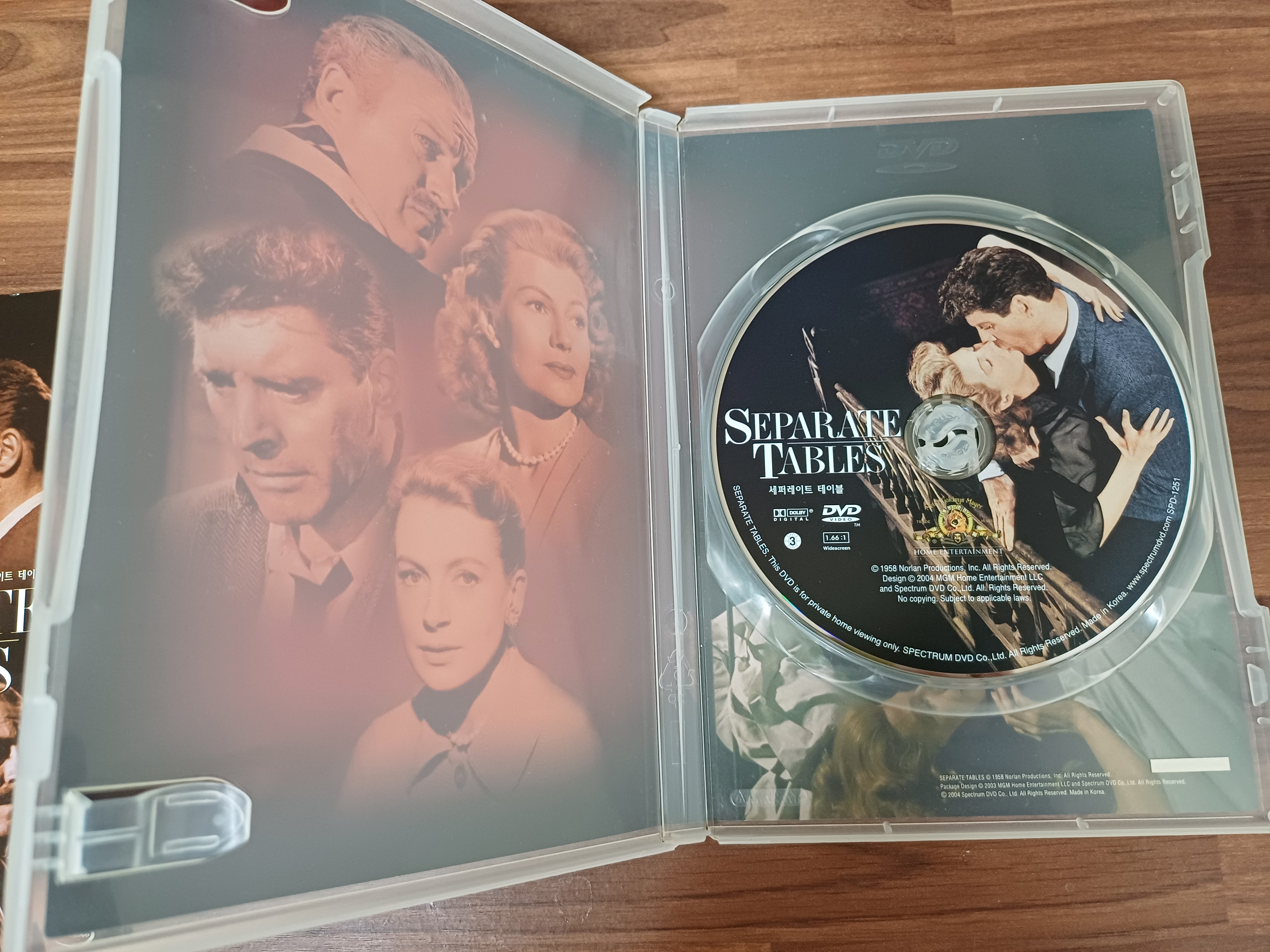 "세퍼레이트 테이블"은 테렌스 라티간의 희곡을 영화화한 작품입니다. 영국 본머스의 호텔을 무대로 설정하고 있는데 서로 애정을 가지고 있으면서도 상대방에게 상처를 주고 갈등하는 관계의 이야기를 그리고 있어요. 출연진 중에서 데보라 카의 역할이 이색적으로 다가오더군요. 소심하고 신경쇠약에 빠진 느낌마저 드는 여성을 연기하고 있죠. 데보라 카가 다른 영화들에서 흔히 보여주던 차분하고 성숙한 여성의 모습과는 다른 듯해서 보는 즐거움이 있더군요. 원래 기획안은 로렌스 올리비에와 비비안 리가 각각 1인 2역을 맡는 거였다고 감독 음성해설에서 이야기하더군요. 델버트 만 감독이 연출을 맡게 되면서 네 명의 배우가 각 캐릭터를 연기하는 현재 모습이 되었다고 하는데 1인 2역의 형식으로 만들었어도 그것대로 아주 흥미로웠을 듯 해요. DVD에 수록된 감독 음성해설에서 재미난 제작 이야기를 많이 들을 수 있었어요. 영화 "마티" 때도 리허설을 했다고는 하는데 "세퍼레이트 테이블"을 연출하면서 유명한 배우들을 데려다 놓고 3주나 리허설을 했다고 하죠. 제작자와 관련된 갈등도 상당했던 듯 한데 최종적으로는 제작자가 영화를 재편집하게 되었다고 해요. 델버트 만이 자유롭게 연출을 하고 싶어서 후에 영화를 떠나서 TV에서 주로 일을 하게 되었다고 언급을 하는데 슬픈 현실 결론이네요.