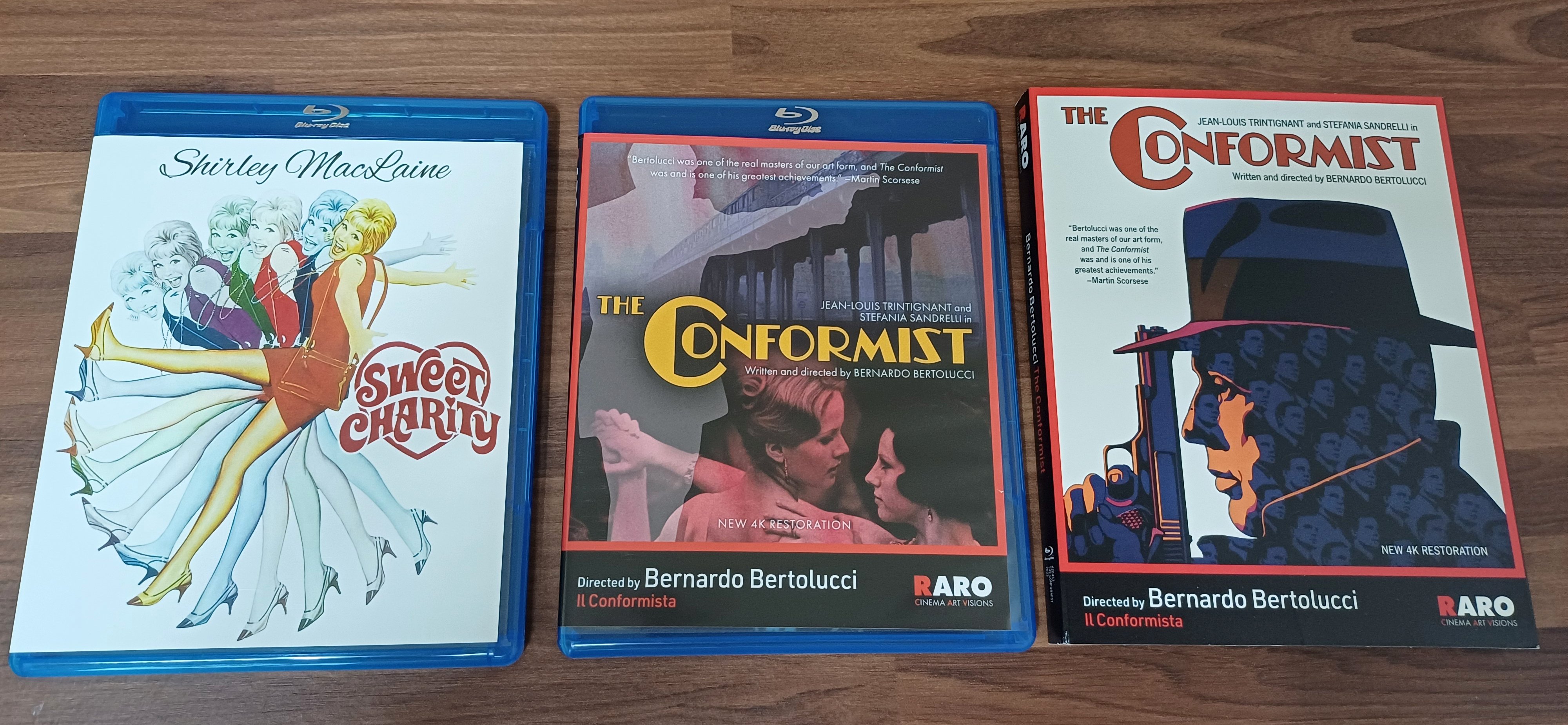 밥 포시의 "스위트 채리티 Sweet Charity"랑 베루톨루치의 "순응자 The Conformist"입니다. "스위트 채리티"는 올초에 셜리 맥클레인 생일이라고 영화사 인스타그램에 영화 클립이 올라왔더라고요. '처음 보는 여자인데 누구지?' 다들 수군대는 사람들의 모습을 이색적으로 담은 뮤지컬 장면이 아주 재밌어 보이더군요. 찜해뒀는데 이 번에 구입했네요. 두 가지 편집본을 두 장의 디스크에 수록했습니다. 순응자 역시 두 장의 디스크인데 2009년 복원판과 새 4K 복원판을 각각 담고 있습니다. 순응자 소책자에는 마틴 스콜세지의 소개글이 영화 세부 정보와 함께 실려 있습니다.
