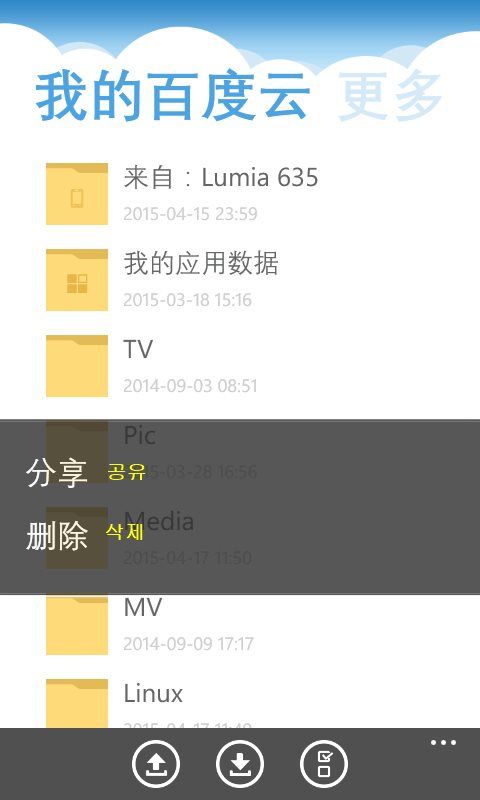 Baidu 클라우드(百度云): 넉넉한 저장공간을 윈도우폰에서도 활용이 가능하다. 스토어에는
