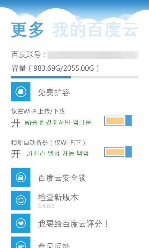 중국어 버전이 있지만 기존 바이두 클라우드 이용자는 사용에 별다른 무리는 없을 듯 하다.