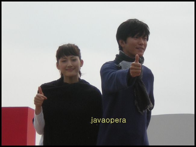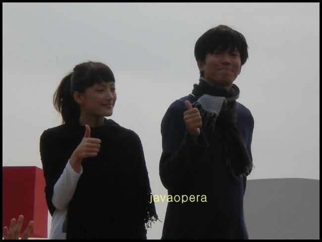 출연진(아야세 하루카, 다나카 세이치)의 야외무대인사가 있었습니다. 많이 피곤해서 가기가