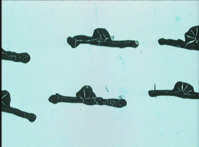 모브 다리의 폭격을 묘사한 이 작품은 직접 그려서 표현한 애니메이션 작품이다.