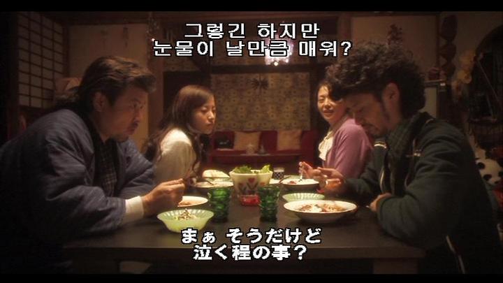 홀로 지내 온 오다기리 죠가 가족과 같은 따뜻함을 느끼며 눈물을 글썽인다.