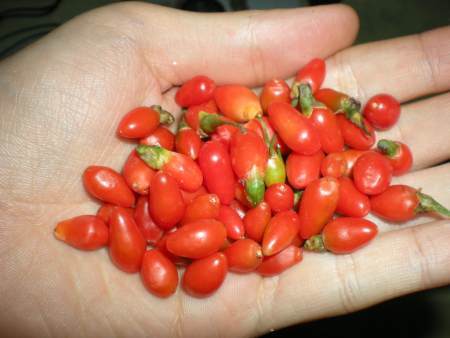 한 움큼의 구기자 열매